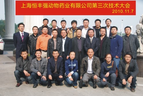 上海恒丰强动物药业有限公司第三次技术大会于11月6-7日在上海举行。公司龙谭董事长、总经理肖江华,研究所、技术部全体人员、销售部经理及优秀代表参加了本次会议。龙总发表题为《技术服务的重点方向是四个战略剂型》的重要讲话。他强调,微囊、大水针、口服液、生物制品这四个具有较高技术科技含量的剂型是公司未来发展的主要方向。选择这四个剂型作为重点剂型,是行业发展的需要,更是公司技术优势的选择。
