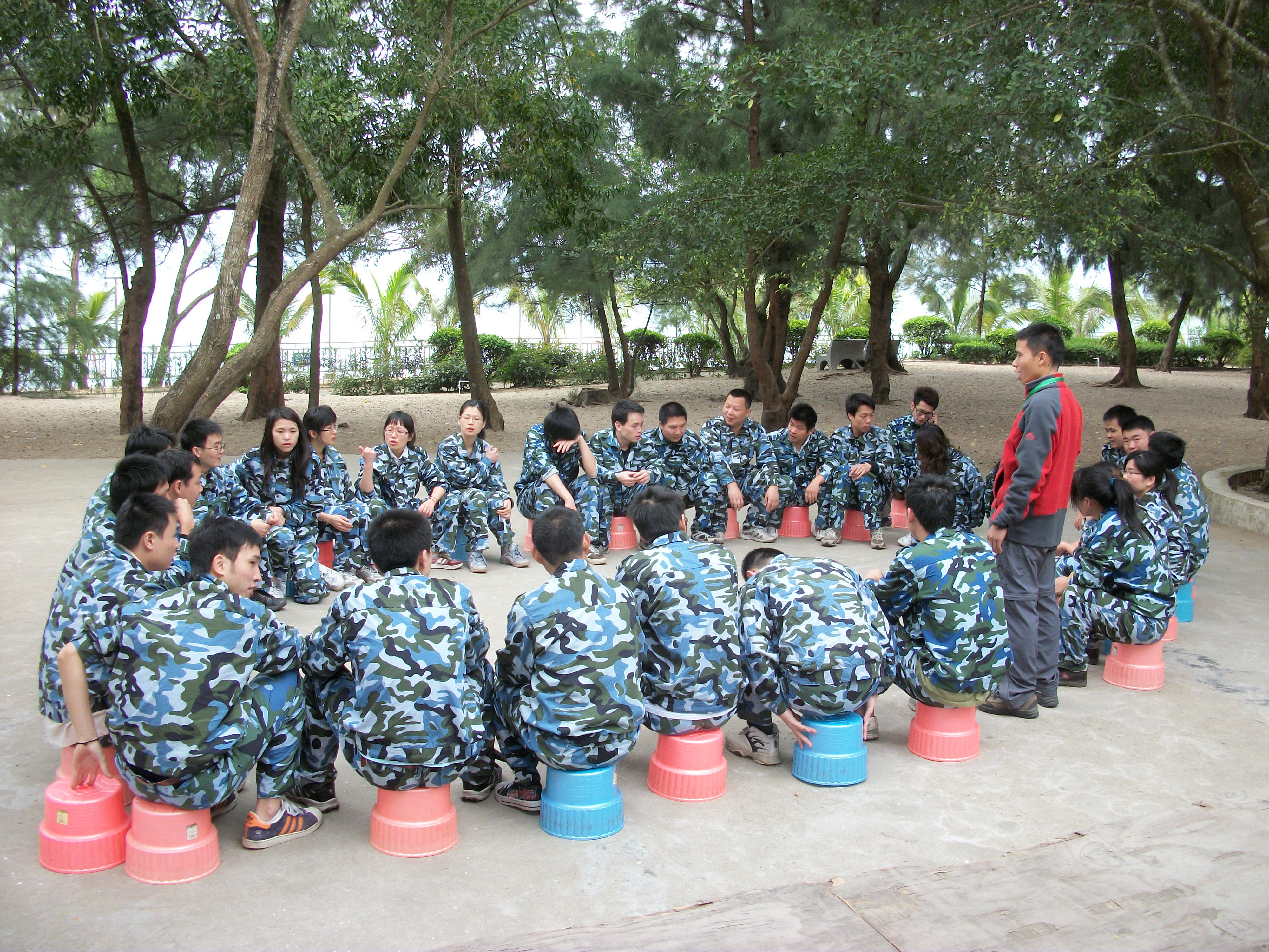 春天是一个万象更新,朝气蓬勃的季节,同时也是个人和团队自我规划,自我提升士气和战斗力的好季节!正是旨在提高恒丰强公司团队的凝聚力,增强公司团队作战能力,我们在2010年3月底踏上了位于深圳龙岗区金鹏湾这片美丽的海滩,进行为期两天的团队拓展训练。“ 拓展培训 ”的英文叫“ OUTWARD BOUND ”,意思是一艘小船在暴风雨来临之前,离开平静的港湾驶向大海,去迎接更大的挑战。拓展源于二战时期,流传到现在拓展训练又被称为“自我突破人格培训”,是一种现代人和现代组织全新的学习方法和培训方式,旨在锻炼人们在困境中与人合作、有坚韧的毅力、能够坚持到底的意志。拓展时刻讲求的是团队合作,也就是team work,在团队合作的同时尽量展现个人的能力,是团队中有个人,个人时刻服务于团队。这两天我们是通过这样的一个流程来展开拓展活动的:
