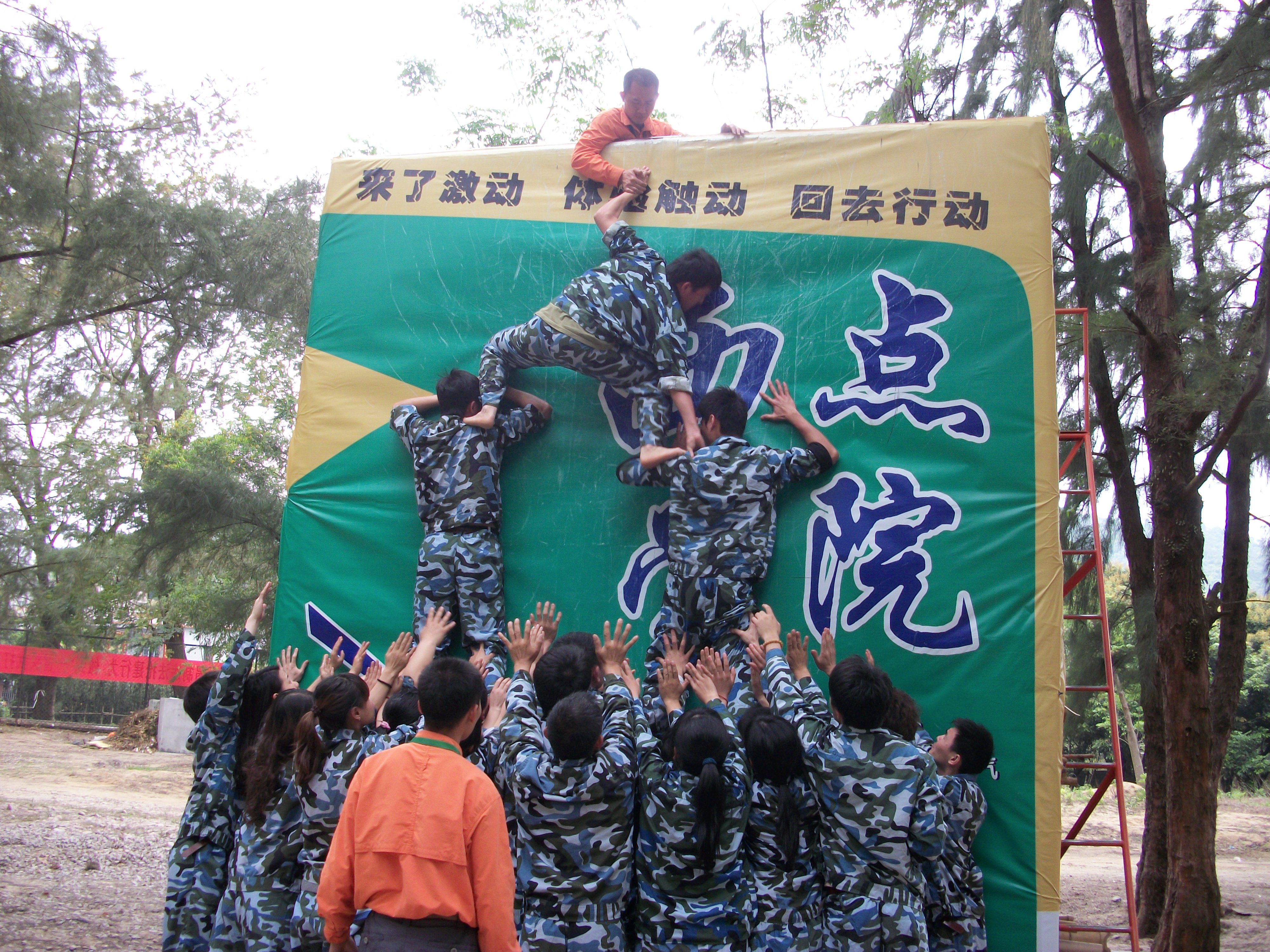 总结,使学员能将培训的收获迁移到工作中去,以实现整体培训目标。这两天的拓展有很多项目,其中包括空中单杠、牵引盲人、看图找实景、毕业墙等,回顾这两天真的很感动,很多队友在活动后都流泪了,我们感动队友的信任,感动对个人潜力的发觉、感动自身的突破,泪水中更包含对过去的悔恨。给我们印象深刻的是最后一个课程,我们团队30位队友徒手爬过一面高达4.4米光滑的毕业墙,刚开始想事情肯定很艰难,甚至有些不太可能,但最终我们只用了短短12分钟的时间让每一位队友都顺利的爬上了毕业墙,更难能可贵的是我们在组织登墙的过程中每一位队友只能通过眼神肢体交流,而不能说话,这让我们深深感到了队友间的相互信任。